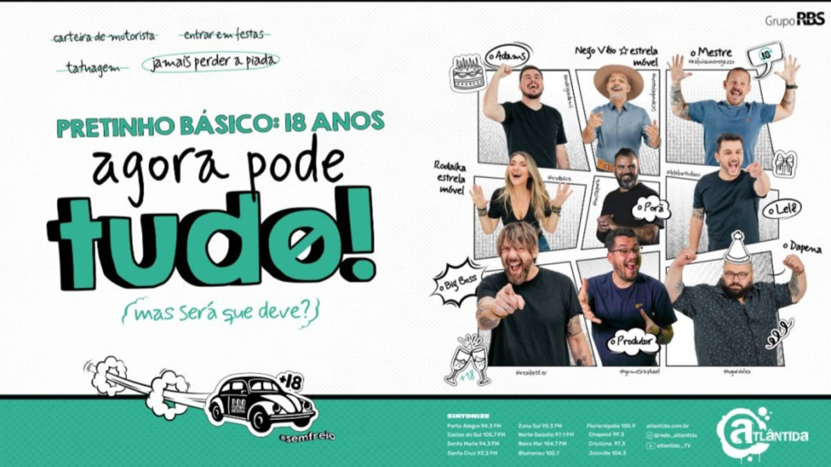 Em celebração dos seus 18 anos no ar, a equipe do 'Pretinho Básico' - programa de Entretenimento da Rádio Atlântida lançou uma campanha. Além disso, a atração também preparou uma programação especial, para esta quarta-feira, 2, na segunda edição do programa, que será transmitida, às 18h, na 'ATL House', casa da Atlântida que fica localizada na Pontifícia Universidade Católica do Rio Grande do Sul (PUCRS). No lugar, haverá um evento, para convidados, onde se apresentará a estreia de um documentário sobre a história do 'PB'.